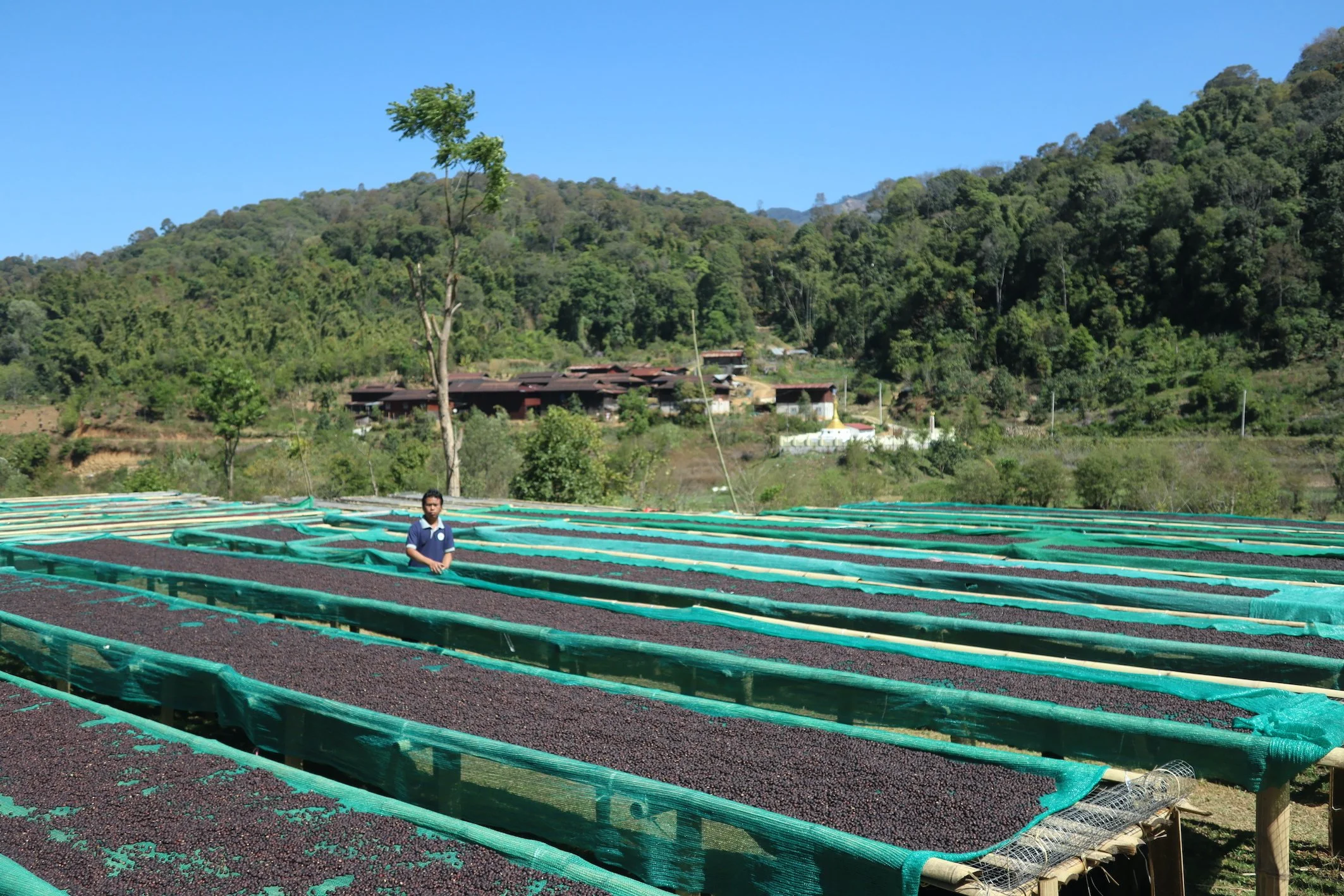 The coffee harvest times up perfectly with the cool, dry season in Myanmar - which is why the terroir here produces exceptionally high-quality dry naturals unlike any other country. In 2018, Susan Heller Evenson from Atlas Coffee was the first to describe these naturals as "clean" and "sparkling" in taste - and one look at their pristine infrastructure shows you why.