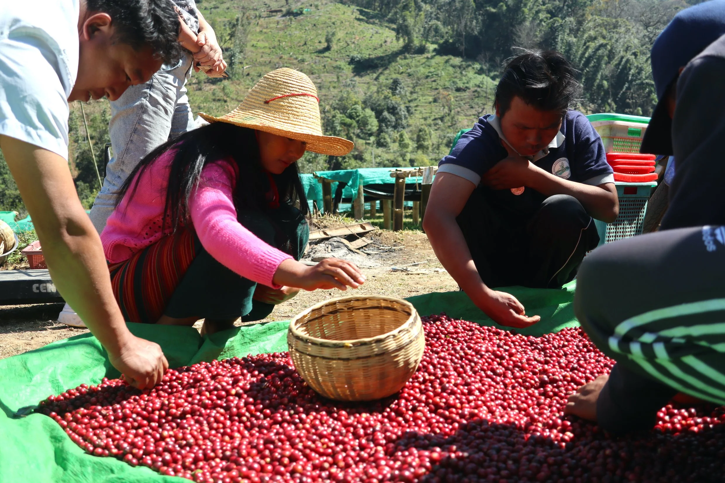 Khun Kyaw Min Htike (white hat), a CQI-certified Arabica expert and leader for Indigo Mountain, heads many educational training programs across the region - a key factor in helping Myanmar's specialty coffee community grow.